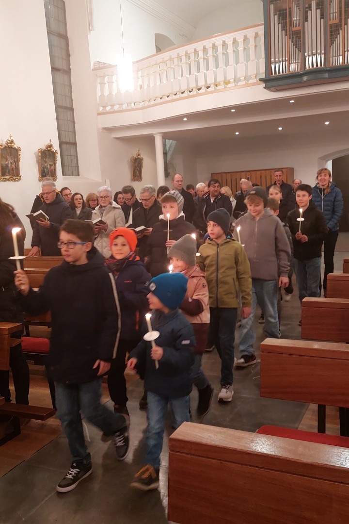 Die Kinder und Jugendlichen zogen gemeinsam mit Pfarrer Hubert in die Kirche ein, wo die mitgebrachten Kerzen gesegnet wurden. Traditionell wurde nach dem Gottesdienst der Blasiussegen gespendet.